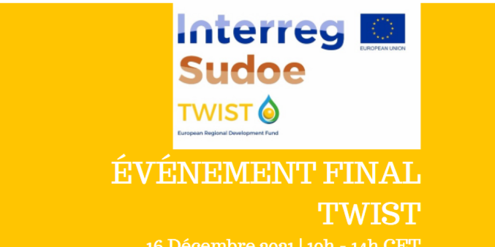 ÉVÉNEMENT FINAL TWIST 26. novembre 2021 Publié par :TwistProject Catégories : Sem categoria Le projet Interreg Sudoe TWIST (Transnational Water Innovation Strategy) va célèbrer sa conclusion par un évènement où les principaux résultats obtenus seront présentés. L’objectif […]